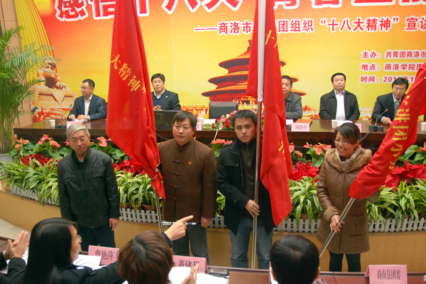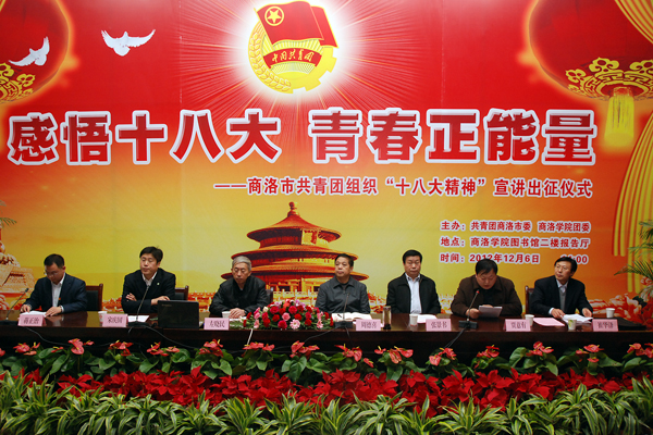 12月6日下午,由團商洛市委和院團委聯(lián)合舉辦的十八大精神宣講團出征儀式在我院舉行,宣講團以“感悟十八大,青春正能量”為主題,引導(dǎo)全市共青團員學(xué)習(xí)宣傳好、貫徹落實好黨的十八大精神,切實把廣大青年的思想與行動統(tǒng)一到十八大的部署和要求上來。