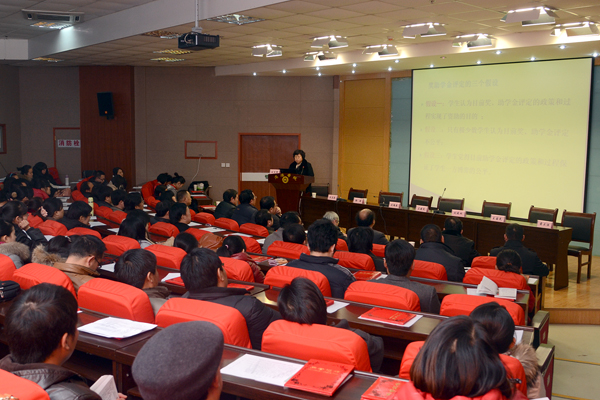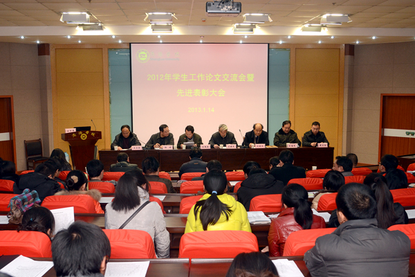 1月14日下午,我院召開2012年學(xué)生工作論文交流會(huì)暨先進(jìn)表彰大會(huì),交流研討學(xué)生工作研究成果,對(duì)2012年學(xué)生工作優(yōu)秀工作日志、論文,優(yōu)秀輔導(dǎo)員、班主任,先進(jìn)集體和個(gè)人進(jìn)行表彰。院黨委副書記左曉民、副院長劉建林出席大會(huì)。學(xué)院教務(wù)處、保衛(wèi)處、招生就業(yè)處、院團(tuán)委負(fù)責(zé)人,各系黨總支書記,受表彰的先進(jìn)個(gè)人,全體輔導(dǎo)員和班主任參加了大會(huì)。會(huì)議由學(xué)生處處長石啟英主持。