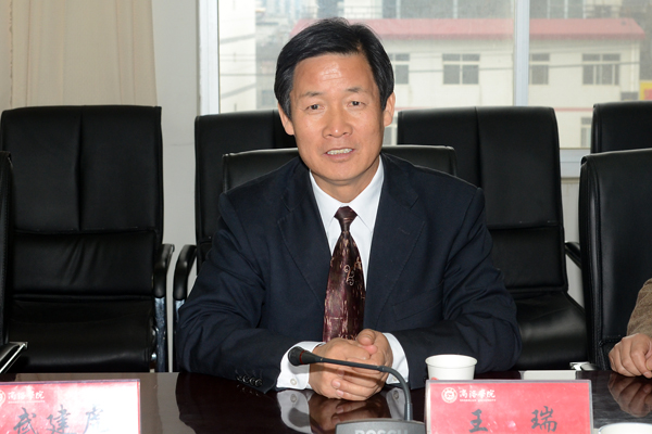 王思懷對王瑞一行來我校交流表示歡迎,并簡要介紹了我校的校情和發(fā)展概況。他向客人們介紹了我?!皣嘤媱潯表椖繉嵤┑娜c(diǎn)經(jīng)驗:第一,注重落實“頂天立地”的教學(xué)理念,將實踐與理論相結(jié)合,聘請優(yōu)秀的一線教師來校進(jìn)行教學(xué)工作是提升學(xué)員自身水平的良好方法;第二,注重學(xué)員信息反饋,不斷優(yōu)化教學(xué)模式是項目實施的重要環(huán)節(jié);第三,密切校地合作、服務(wù)地方及社會、重視信息傳播是我?!皣嘤媱潯比〉脧V泛影響的必要途徑。
