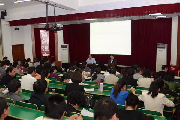 為了推動(dòng)我?!霸鯓咏ㄔO(shè)好應(yīng)用型本科院?!贝笥懻撋钊腴_(kāi)展,促進(jìn)師生了解應(yīng)用型本科院校的本質(zhì)特點(diǎn)、發(fā)展戰(zhàn)略與教育目標(biāo),5月10日,宣傳部、教務(wù)處和人文社會(huì)科學(xué)系特邀廈門大學(xué)博士生導(dǎo)師、教育部普通高等學(xué)校教學(xué)工作水平評(píng)估專家組成員史秋衡教授,為我校黨委中心學(xué)習(xí)組成員,各系部、各部門黨政負(fù)責(zé)人作了題為《地方本科院校中長(zhǎng)期發(fā)展戰(zhàn)略若干思考》的主題報(bào)告,為中級(jí)職稱以上教師和部分學(xué)生作了題為《應(yīng)用型本科院校教育目標(biāo)與評(píng)價(jià)》的專題報(bào)告。校黨委書(shū)記張繼良、副院長(zhǎng)劉建林分別主持了兩場(chǎng)報(bào)告會(huì)。