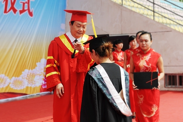 在學(xué)士學(xué)位授予儀式上,畢業(yè)生們依次走上主席臺,接受校領(lǐng)導(dǎo)為其撥流蘇的受禮儀式。校領(lǐng)導(dǎo)也分別為畢業(yè)生頒發(fā)學(xué)位證書,并同他們一一合影留念。
