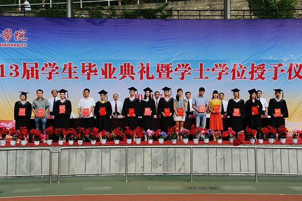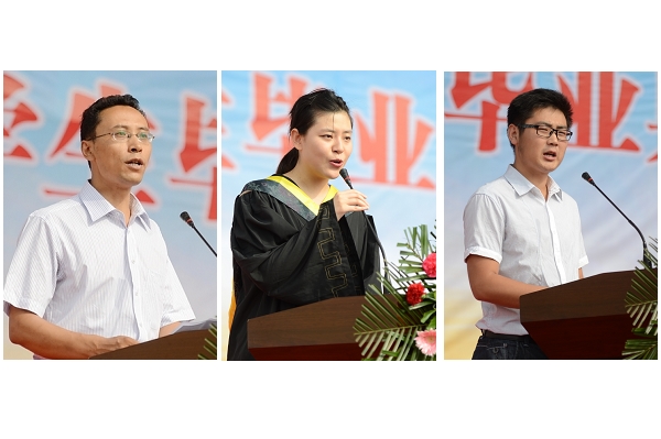 生物醫(yī)藥工程系王學(xué)軍博士代表教師發(fā)言。城鄉(xiāng)發(fā)展與管理工程系2009級學(xué)生魏水青作為畢業(yè)生代表發(fā)言。中文系2011級學(xué)生溫健偉代表在校生發(fā)言。畢業(yè)典禮在校歌《正道直行做棟梁》的歌聲中圓滿結(jié)束。嘹亮的歌聲回蕩在菁菁校園,激勵全體畢業(yè)生“博聞強識展宏圖,正道直行做棟梁,賢俊建功業(yè),榮校興國邦”。