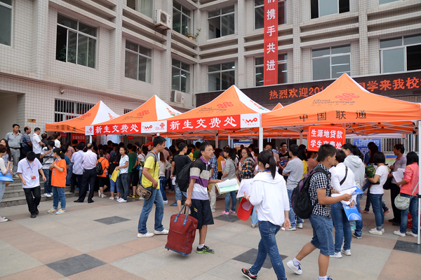 為保證新生順利入學(xué),學(xué)校在火車站、汽車站和校門口分別設(shè)立迎新接待點(diǎn),為新生和家長(zhǎng)們提供服務(wù)。校內(nèi)設(shè)立了新生咨詢處、行李寄存處、公安執(zhí)勤處、醫(yī)療服務(wù)處、家長(zhǎng)休息區(qū),還專門為家境貧困的學(xué)生開放“綠色通道”。路口醒目的位置都有各系的迎新指示牌,志愿者們穿梭其中為新生提供各類咨詢和幫助。