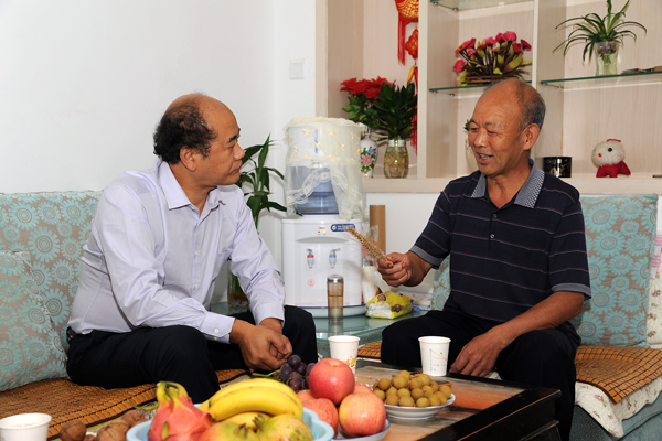在于浩世家中,劉建林詳細(xì)了解了于浩世在小麥育種研究中取得的最新成果,并向他為學(xué)??蒲蟹?wù)地方工作做出的貢獻(xiàn)表示感謝。劉建林說,小麥育種工作是我校改革發(fā)展中涌現(xiàn)出的一個亮點(diǎn),今后要把這項(xiàng)工作深入持續(xù)下去,可以考慮成立商洛學(xué)院良種繁育中心。希望于老師繼續(xù)作為育種工作的帶頭人,培養(yǎng)一支精干的科研團(tuán)隊(duì),為我校的發(fā)展凝煉特色。劉建林要求生物醫(yī)藥工程系高度重視和支持此項(xiàng)工作,積極協(xié)調(diào)、解決實(shí)驗(yàn)田和實(shí)驗(yàn)室問題,再出新成果、多出好成果。