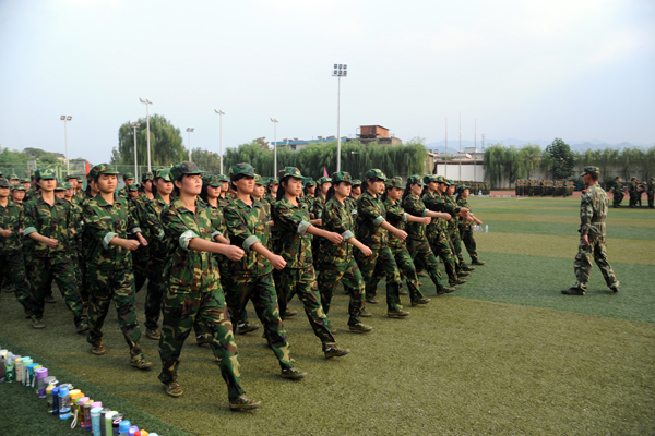 我校2013級新生軍訓火熱進行中