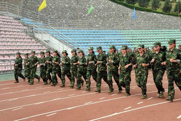 9月12日,2013級新生軍訓已進入第6天。來自全國24個?。ㄊ小⒆灾螀^(qū))的3000余名學生編成6個營36個連,正在熱火朝天地進行軍事訓練。涼爽多云的天氣為同學們的訓練提供了不少便利,綠茵茵的青草和橄欖綠的迷彩軍裝相互輝映,讓同學們顯得活力十足。軍官們嚴格要求新生整理軍容、端正軍姿,不時親自示范,手把手糾正基本動作。同學們在教官的帶領下認真訓練,絲毫沒有懈怠,已完成了軍姿、整理著裝、稍息、立正、齊步、正步等訓練科目。