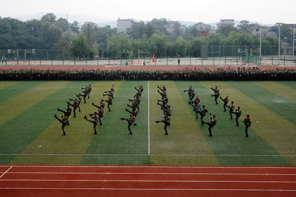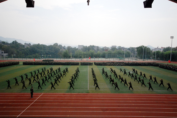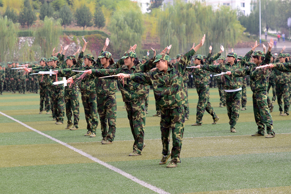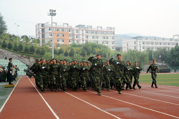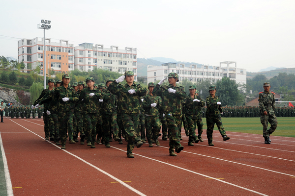 2013級(jí)學(xué)生軍訓(xùn)自9月7日開始,為期12天。完成了隊(duì)列隊(duì)形訓(xùn)練、整理內(nèi)務(wù)訓(xùn)練等規(guī)定內(nèi)容,并于9月16日進(jìn)行了15公里行軍訓(xùn)練。按照學(xué)校安排,軍訓(xùn)結(jié)束后,2013級(jí)新生將開始軍事理論學(xué)習(xí),接受國(guó)防知識(shí)教育。
