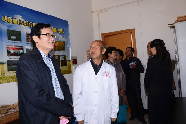 黃暉一行深入我校GAP科研工程中心參觀了中醫(yī)藥、植物學(xué)、小麥育種等重點實驗室,饒有趣味地觀摩了我校在服務(wù)地方資源開發(fā)利用、中醫(yī)藥研究方面的成果。黃暉一行介紹了國家在中醫(yī)藥領(lǐng)域的發(fā)展?fàn)顩r、研究前沿,鼓勵我校在食品藥品、中藥材領(lǐng)域做好基礎(chǔ)研究的同時向?qū)W科前沿邁進(jìn),研究出實用價值更高的成果。