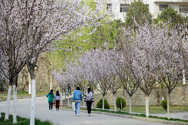 四月的校園,萬物復(fù)蘇,氣溫回暖,各種植物退下了冬日的臃腫,換上了充滿生機的春裝,校園里一派暖春的景象。柳樹初生的嫩芽隨風(fēng)搖曳,些許杏花展露微白的花蕊,桃花偷偷羞紅的笑臉,舞活了整個生機盎然的校園。同學(xué)們享受著鮮花和暖陽,在春光明媚的校園里讀書、學(xué)習(xí);趁著春意踏青、春游,用手機和相機留下美好的瞬間,在操場上鍛煉的人也漸漸增多。