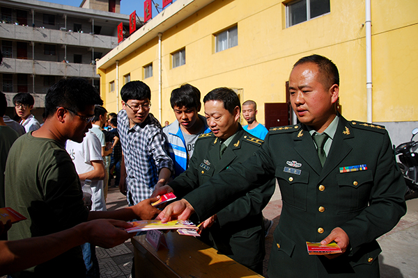 為了認真做好2014年應屆畢業(yè)生入伍預征和部隊直招士官工作,我校成立了以黨委副書記左曉民為組長的入伍預征工作領(lǐng)導小組,通過網(wǎng)絡(luò)、報刊、等校園媒介,以及橫幅標語、海報、展板等各類宣傳載體,廣泛深入地進行征兵工作宣傳動員。各二級學院和各部門密切配合,通力協(xié)作,確保學校應征入伍的大學生程序、標準和資料符合要求,力爭把優(yōu)秀的大學生兵源送往部隊,為我國建設(shè)強大的國防事業(yè)做出應有的貢獻。