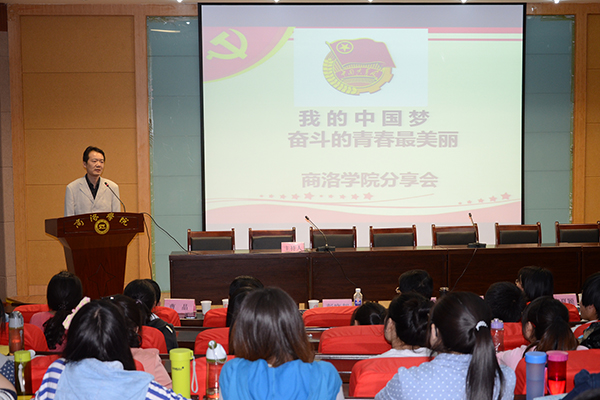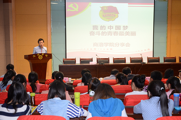 5月7日,陜西省“我的中國(guó)夢(mèng)--奮斗的青春最美麗”分享團(tuán)走進(jìn)我校,與我校師生分享他們青春追夢(mèng)的奮斗歷程與成長(zhǎng)心得。共青團(tuán)陜西省委副書(shū)記單舒平出席了活動(dòng),并在校黨委副書(shū)記左曉民的陪同下參觀了我校校園。共青團(tuán)商洛市委書(shū)記曹艷萍,團(tuán)省委宣傳部干部李夏穎,校團(tuán)委副書(shū)記彭曉邦,我校200余名青年學(xué)生代表參加了分享會(huì)。分享會(huì)由校宣傳部部長(zhǎng)郭英勇主持。