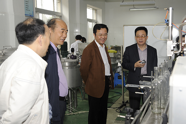 在劉建林等的陪同下,何寧一行參觀了我校校園、圖書館、生物醫(yī)藥與食品工程學(xué)院實驗室等處。