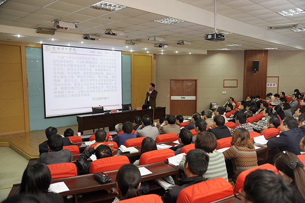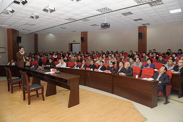 校領(lǐng)導(dǎo)張景書、左曉民、王思懷、魏書堂,各二級學(xué)院負責(zé)人、教學(xué)機構(gòu)負責(zé)人,全校副高職稱及以上人員聽取了報告。報告會由黨委副書記左曉民主持。