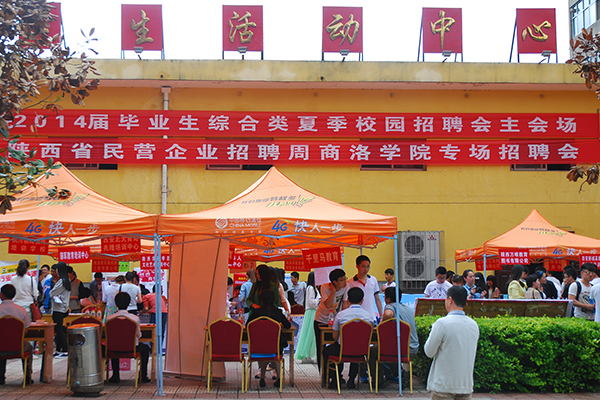 為搭建畢業(yè)生與用人單位的雙向選擇平臺(tái),進(jìn)一步促進(jìn)高校畢業(yè)生充分就業(yè),5月24日,由陜西省人社廳、教育廳、總工會(huì)和工商聯(lián)主辦,我校承辦的陜西省2014年民營(yíng)企業(yè)招聘周商洛專場(chǎng)暨2014屆畢業(yè)生夏季校園招聘會(huì)在我校舉行。260余家招聘單位,省內(nèi)各高校應(yīng)往屆畢業(yè)生2000多人參加了招聘會(huì)。
