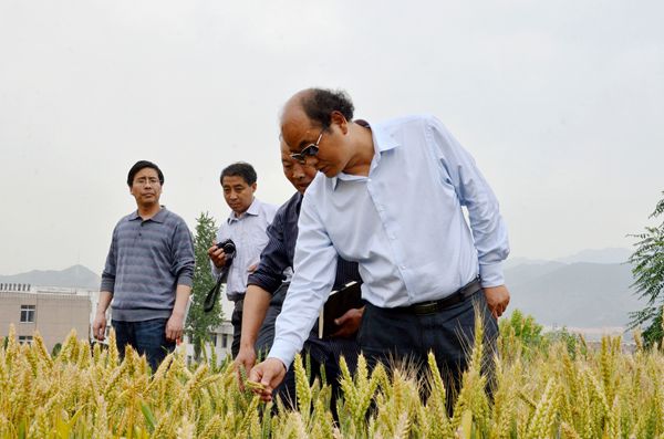 5月30上午,校長(zhǎng)劉建林在小麥育種專(zhuān)家于浩世的陪同下,深入小麥試驗(yàn)田,調(diào)研我校小麥新品系“商麥065—10—16”和“商麥0613—12—3—2”的試種情況。校秦嶺植物良種繁育中心主任王新軍、生物醫(yī)藥與食品工程學(xué)院副院長(zhǎng)張向東、校辦公室副主任魚(yú)小強(qiáng)陪同調(diào)研。
