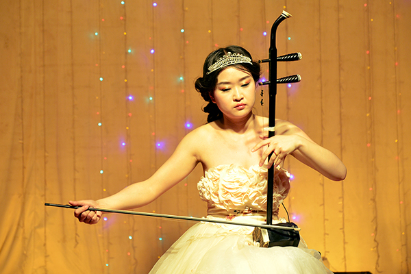 音樂學(xué)專業(yè)優(yōu)秀畢業(yè)生陳穎、竇貝貝、吳丹、強(qiáng)薇、郭敏、楊柳、褚瑤為大家?guī)砹司实谋硌??!段矣H愛的爸爸》旋律優(yōu)美,演唱深情動人,描寫了少女勞萊達(dá)為追求愛情向爸爸懇求的場景;《讓我這樣看著你的樣子》生動形象地講述了巴丹公主對花木蘭這位替父從軍的假小子投入愛慕之情的故事;《揚(yáng)鞭催馬運(yùn)糧忙》熱情明快,富有強(qiáng)烈的藝術(shù)感染力;二胡表演《奔馳在千里草原》描寫了牧民在草原上奔馳的情景,抒發(fā)了對未來幸福生活的向往;歌曲《我要我們在一起》宣唱著2010級畢業(yè)生對自由對未來無限向往的心聲。