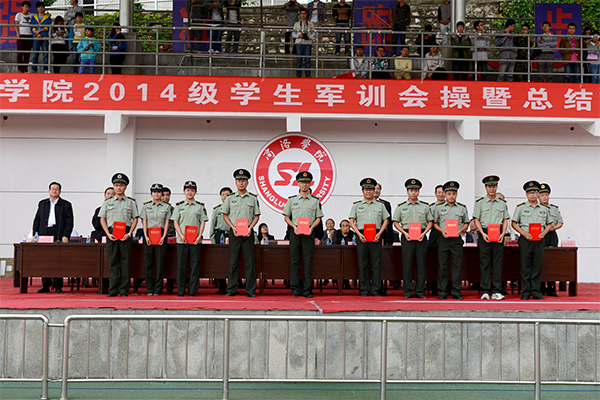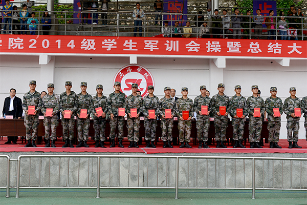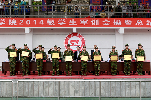 軍訓(xùn)匯報(bào)表演結(jié)束后,石啟英宣讀了2014級(jí)軍訓(xùn)工作先進(jìn)集體及個(gè)人的表彰決定。主席臺(tái)上的領(lǐng)導(dǎo)和嘉賓為軍訓(xùn)隊(duì)列先進(jìn)集體、軍訓(xùn)內(nèi)務(wù)先進(jìn)集體、軍訓(xùn)優(yōu)秀教官、軍訓(xùn)工作先進(jìn)個(gè)人及參訓(xùn)優(yōu)勝標(biāo)兵代表頒發(fā)了獎(jiǎng)牌和證書。