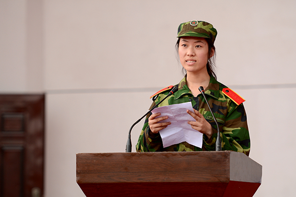 軍訓(xùn)學(xué)生代表、語言文化傳播學(xué)院學(xué)生孟丹做了發(fā)言。她總結(jié)了軍訓(xùn)的感想和收獲,表達(dá)了對(duì)軍訓(xùn)教官和老師的感謝,并希望同學(xué)們將軍訓(xùn)中寶貴的收獲植根于今后的人生中,努力把自己塑造成有用之才。