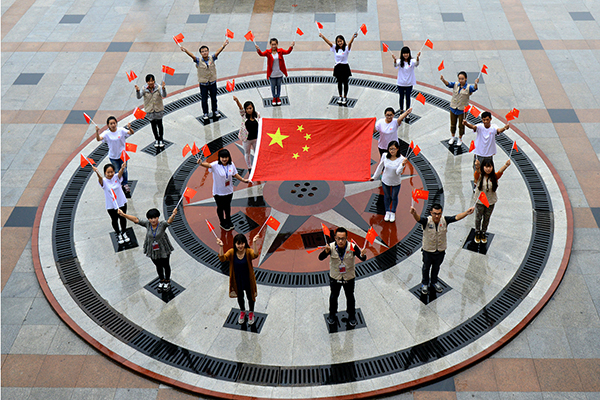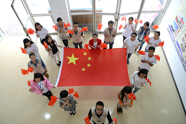 在中華人民共和國65周年華誕到來之際,有網(wǎng)友發(fā)起“我和國旗合個影,我為中國點個贊”活動,迅速燃起了網(wǎng)友們的愛國熱情,短短幾天內,該話題在微博上的閱讀量就超過6000萬。該活動在我校也受到熱捧。近日,我校大學生通訊社的同學們自發(fā)開展了“我與國旗合個影 我向祖國獻祝?!被顒?,拍攝并在微博上展示自己與國旗的合影,撰寫或轉發(fā)祝福祖國的話語,用鮮艷的五星紅旗、最美的笑臉、最真的祝福為祖國65周年生日華誕獻禮。