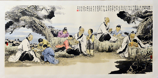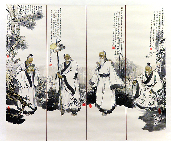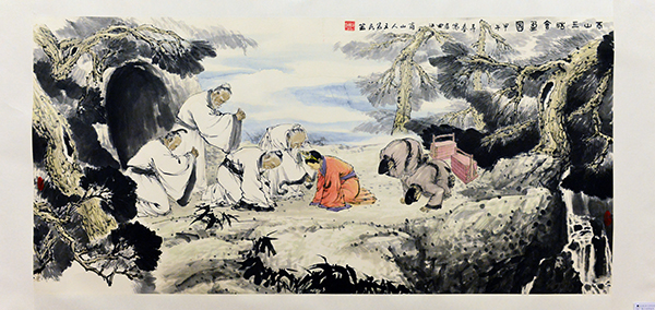 本次畫展共展出以王家民家鄉(xiāng)商山洛水風光景致以及歷史故事為題材的書畫作品70幅。其精品力作展示出了商洛山水之美和商山洛水特有的靈秀之氣,尤其是其商山四皓系列畫,通過生動具體的故事內(nèi)容、生活情景和人物形象把遙遠而模糊的故事生動地再現(xiàn)出來,詮釋著“從歷史走向未來,從延續(xù)民族文化血脈中開拓前進”的精神內(nèi)涵,具有深厚的文化底蘊。
