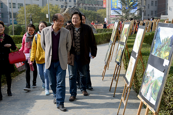 在洛南寫生活動(dòng)期間,師生參觀了“墨韻華陽(yáng)寫生展”,與諸多畫家交流學(xué)習(xí),通過(guò)觀摩,開闊眼界,吸取營(yíng)養(yǎng)。