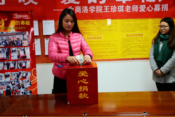 近日,我校師生以“商山洛水作見證,讓愛心創(chuàng)造奇跡”為題,向社會公眾發(fā)出了救助優(yōu)秀女教師王珍琪的倡議書,通過現(xiàn)場募捐、微信、微博等方式為她籌集捐款,這場愛心傳遞,也得到了社會各界的熱烈回應(yīng)。