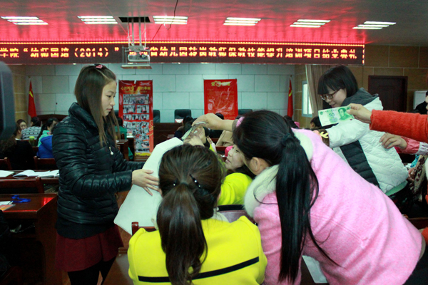 11月27日,我?!坝讕焽啵?014)”——陜西省幼兒園轉(zhuǎn)崗教師保教技能提升培訓項目正在舉辦結(jié)業(yè)典禮,在得知王珍琪老師的患病消息后,學員們自發(fā)在結(jié)業(yè)典禮上進行捐款,踴躍捐款的場景十分感人,短短幾十分鐘內(nèi)共籌集善款3338.7元。