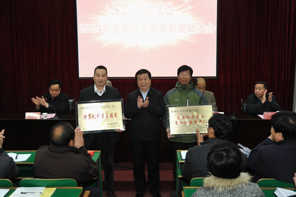 在熱烈的掌聲中,黨委書記張景書為省級(jí)本科教學(xué)工程項(xiàng)目授牌,校長(zhǎng)劉建林、黨委副書記左曉民、紀(jì)委書記王思懷分別為2014年度教學(xué)技能競(jìng)賽優(yōu)勝者、校級(jí)本科教學(xué)工程精品課程、校級(jí)教學(xué)名師、校級(jí)雙語教學(xué)示范課程、優(yōu)秀實(shí)習(xí)帶隊(duì)教師、優(yōu)秀教案及優(yōu)秀電子課件獲獎(jiǎng)?wù)哳C發(fā)榮譽(yù)證書。左曉民宣讀了表彰決定。