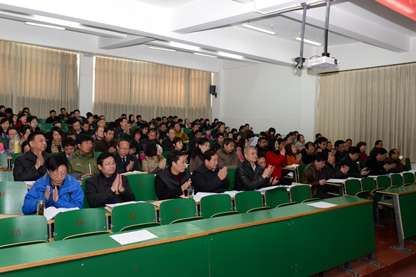 校長(zhǎng)劉建林在大會(huì)上作了《商洛學(xué)院年度工作報(bào)告》。報(bào)告回顧了我校2014年整體工作,提出了對(duì)2015年的工作設(shè)想以及要求。報(bào)告從黨的建設(shè)不斷加強(qiáng)、學(xué)校事業(yè)全面發(fā)展、保障體系完善有力三個(gè)方面對(duì)2014年工作成就做了全面總結(jié)。從鞏固和拓展黨的群眾路線教育實(shí)踐活動(dòng)成果;立足實(shí)際,創(chuàng)新發(fā)展,可持續(xù)發(fā)展;深化學(xué)校發(fā)展的整體思路;凝心聚力確保順利通過(guò)合格評(píng)估;深化管理體制改革;轉(zhuǎn)型發(fā)展實(shí)質(zhì)性推進(jìn);人才隊(duì)伍建設(shè)拿出新舉措;考核導(dǎo)向取得新成效;教學(xué)、科研、學(xué)生工作取得標(biāo)志性成果;合作交流爭(zhēng)取新突破;宣傳工作在改進(jìn)中加強(qiáng);校園面貌明顯改觀;民生工程群眾滿意等十三個(gè)方面對(duì)本年度工作提出了具體要求。
