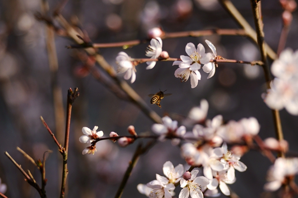 碧空如洗,暖陽高照。蟄伏了一個(gè)寒冬,春風(fēng)不知不覺間為校園披上了點(diǎn)點(diǎn)嫩綠鵝黃,片片嫣紅淡粉的輕紗。細(xì)心的校園攝影師們,用相機(jī)捕捉著校園的盎然春景。