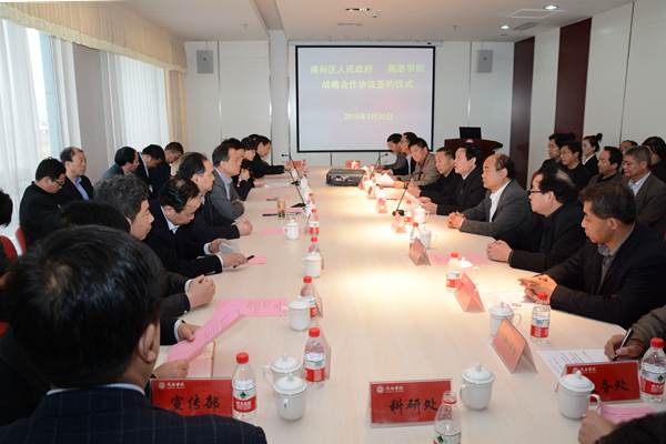 校黨委書記張景書在講話中指出,商州區(qū)政府和地方父老鄉(xiāng)親多年來的一貫支持,是我校各項(xiàng)事業(yè)不斷發(fā)展的重要條件。這次校地戰(zhàn)略合作協(xié)議的簽署,是我校積極貫徹落實(shí)習(xí)近平總書記來陜視察重要講話精神,堅(jiān)持開放辦學(xué),深化產(chǎn)學(xué)研合作,推進(jìn)學(xué)校內(nèi)涵發(fā)展的一項(xiàng)具體行動(dòng),也標(biāo)志著雙方的合作邁上了一個(gè)新臺階。通過校地戰(zhàn)略合作,商州區(qū)人民政府將為我校在文化建設(shè)、科學(xué)研究、人才培養(yǎng)和教學(xué)改革等方面提供有力支持;我校也將進(jìn)一步對接商州區(qū)社會經(jīng)濟(jì)發(fā)展需要,充分發(fā)揮人才、智力和技術(shù)優(yōu)勢,為商州區(qū)、商洛市經(jīng)濟(jì)社會又好又快發(fā)展提供大力支持。張景書強(qiáng)調(diào),適應(yīng)經(jīng)濟(jì)社會發(fā)展的新常態(tài),加快經(jīng)濟(jì)轉(zhuǎn)型、產(chǎn)業(yè)升級,是地方政府的責(zé)任,也是商洛學(xué)院義不容辭的社會職責(zé)。誠摯希望商州區(qū)人民政府和我校友好攜手,不斷總結(jié)合作經(jīng)驗(yàn),全方位提升合作層次和水平,全面落實(shí)協(xié)議內(nèi)容,早日取得豐碩成果。