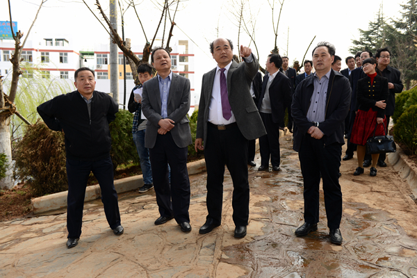 簽約儀式前,在張景書、劉建林、王思懷、魏書堂、范新會、劉寶盈等校領(lǐng)導(dǎo)的陪同下,張盈安一行參觀了我校教學(xué)綜合大樓工地、運(yùn)動(dòng)臺地、青年教師公寓和學(xué)生公寓工地、圖書館前通道施工現(xiàn)場和圖書館、尾礦資源綜合利用省級重點(diǎn)實(shí)驗(yàn)室、秦嶺植物標(biāo)本陳列室和我校辦學(xué)成果展室等處。