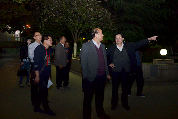 4月23日晚,校長劉建林、副校長魏書堂、副校長劉寶盈在學(xué)校辦公室、保衛(wèi)處、后勤保障處等相關(guān)負(fù)責(zé)人的陪同下,實地察看了校園內(nèi)各路段路燈建設(shè)工作和校園環(huán)境狀況。