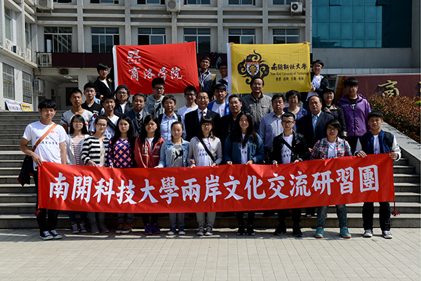 我校師生與臺(tái)灣南開科技大學(xué)師生互贈(zèng)了禮品并合影留念。