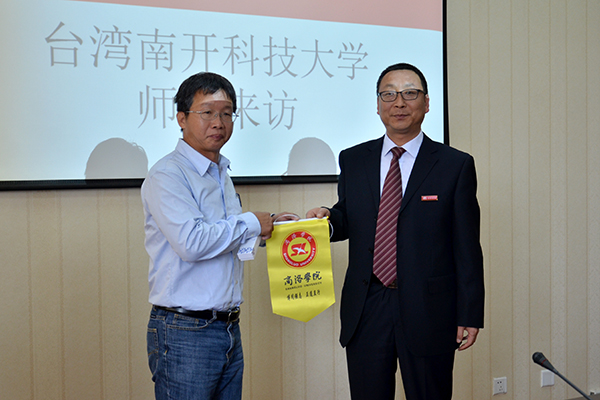 劉寶盈對(duì)臺(tái)灣師生的到來表示熱烈歡迎,并介紹了我校的基本概況。他指出,臺(tái)灣南開科技大學(xué)師生是我校迎來的首批臺(tái)灣交流師生,真正實(shí)現(xiàn)了兩校交流的互訪,臺(tái)灣南開科技大學(xué)與我校的教學(xué)理念、辦學(xué)定位相似,希望兩校能進(jìn)一步加強(qiáng)合作交流,促進(jìn)共同發(fā)展。