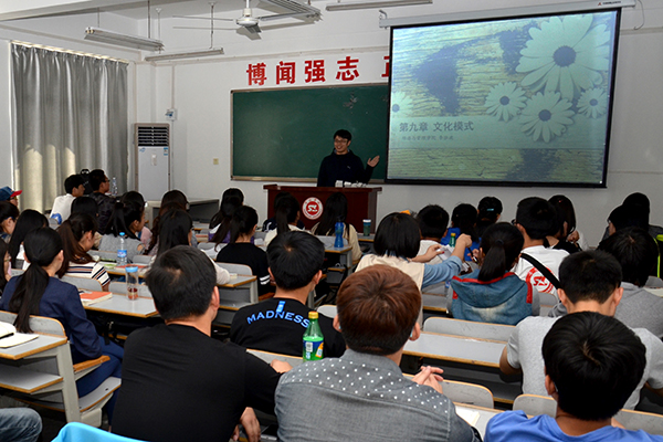 臺(tái)灣南開科技大學(xué)學(xué)子盧瑞林在經(jīng)濟(jì)與管理學(xué)院《文化學(xué)教程》課上介紹臺(tái)灣文化