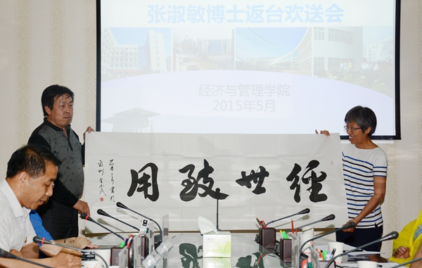 歡笑情如舊,相留畏曉鐘。臺灣南開科技大學張淑敏博士來我校訪學即將結(jié)束歸臺,5月18日晚,學校為其舉辦歡送會,并就臺灣南開科技大學師生來我校訪學作了階段性總結(jié)交流。副校長魏書堂出席活動。發(fā)展規(guī)劃與合作交流處處長王新軍、學生處處長石啟英、教務(wù)處副處長張建芳、經(jīng)濟與管理學院黨政負責人及師生代表參加歡送會并作了交流發(fā)言。歡送會由經(jīng)濟與管理學院院長樊景博主持。