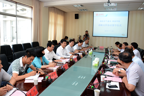 陳道輝宣讀了《商洛市氣象局 商洛學院戰(zhàn)略合作協(xié)議》。根據協(xié)議,我校與商洛市氣象局在充分發(fā)揮科技、教育和人才資源優(yōu)勢的基礎上,針對陜南移民搬遷重大工程各種規(guī)劃等項目聯(lián)合開展氣候可行性論證和氣候災害風險評估;針對建設“生態(tài)商洛、宜居商洛”過程中的環(huán)境問題合作開展研究并聯(lián)合申報項目;針對建設秦嶺生態(tài)示范城市及特色產業(yè)發(fā)展的需要開展氣象災害預警、災害發(fā)生規(guī)律研究及特色產品品質品種氣候認證;充分發(fā)揮我校水資源研究成果優(yōu)勢,支持南水北調中線水源涵養(yǎng)區(qū)氣象服務中心建設與服務工作,聯(lián)合相關部門開展丹江流域人工影響天氣基地、氣候變化對南水北調中線工程影響等項目的策劃、論證和科研工作。雙方還在聯(lián)合開展人才培養(yǎng)與培訓進修,共建教學實習基地等方面開展全方位合作。