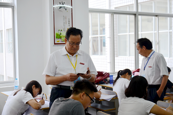 在考試現(xiàn)場,校領(lǐng)導逐個考場檢查了學生的應考情況,并詳細了解考場秩序、試卷制備及命題、考風考紀等方面的情況。