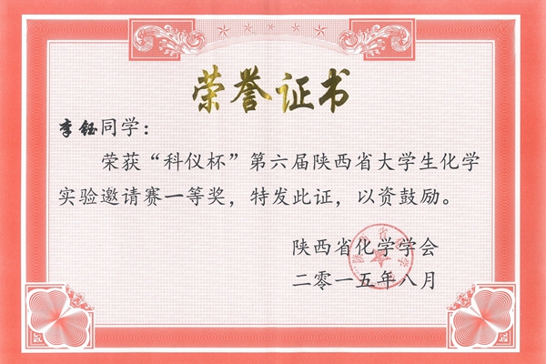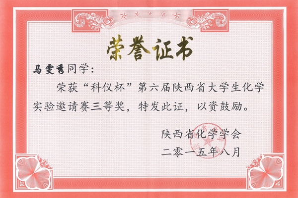 8月20至22日,由陜西省化學會主辦,寶雞文理學院承辦的“科儀杯”第六屆陜西省化學實驗邀請賽暨第五屆陜西省化學實驗中心聯(lián)席會議在寶雞文理學院舉行。我校代表隊憑借扎實的理論功底及熟練的實驗技能,獲得大賽一等獎1項,三等獎2項,實現(xiàn)了一等獎從無到有的歷史性突破。
