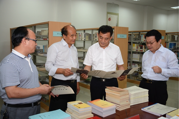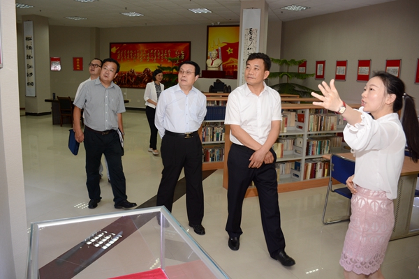 在校黨委書記張景書、校長劉建林、副校長范新會的陪同下,王紫貴一行深入我校各校區(qū),視察了陜西省尾礦資源綜合利用重點實驗室、秦嶺植物標(biāo)本陳列室、辦學(xué)成就展廳、綜合教學(xué)樓工地、青年教師公寓工地、商洛紅色文化資料館、賈平凹暨商洛文化研究中心、就業(yè)洽談室等處,并參觀了我?!吧躺阶怨湃宋牡亍焙汀吧搪鍖W(xué)院賦”浮雕墻。