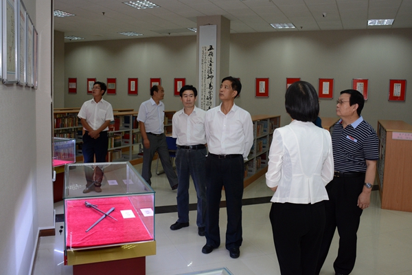 在校黨委書記張景書、校長(zhǎng)劉建林、副校長(zhǎng)范新會(huì)的陪同下,張新民一行深入我校各校區(qū),視察了陜西省尾礦資源綜合利用重點(diǎn)實(shí)驗(yàn)室、秦嶺植物標(biāo)本陳列室、辦學(xué)成就展廳、綜合教學(xué)樓工地、青年教師公寓工地、商洛紅色文化資料館、賈平凹暨商洛文化研究中心等處,并參觀了我校觀景平臺(tái)和“商洛學(xué)院賦”浮雕墻。