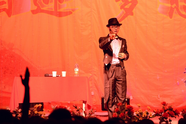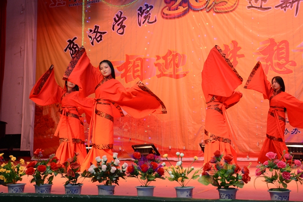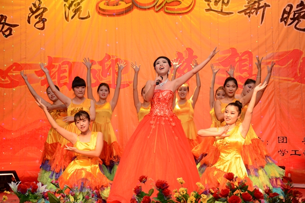 晚會以“心相迎 夢想飛”為主題。在大合唱《游擊隊隊歌》和校歌《正道直行做棟梁》的動人旋律唱中拉開帷幕。整場晚會形式多樣,現(xiàn)代與古典同臺,聲樂與器樂相和,浪漫與詼諧相伴。歌舞、相聲、朗誦、魔術、樂器聯(lián)奏等精彩的節(jié)目為觀眾呈現(xiàn)了豐盛的視聽盛宴。為紀念中國人民抗戰(zhàn)暨世界反法西斯戰(zhàn)爭勝利70周年,由藝術學院劉威老師帶來的《紅歌聯(lián)唱》將整場晚會渲染出了紅色的氣息,激昂的歌聲與清靈的鋼琴悠揚的笛聲相宜相合贏得了一陣陣贊美與掌聲。城鄉(xiāng)規(guī)劃與建筑工程學院學生帶來的相聲《地理圖》用毫不遜色于銀幕相聲的精彩表演給整個會場帶來了不息笑聲與不絕的掌聲。由商洛劇團的演員帶來的商洛花鼓戲《夫妻觀燈》表現(xiàn)了商洛本地戲曲的魅力,也預示了我校戲曲學院的蓬勃發(fā)展。最終,在一首《共筑中國夢》的師生歌伴舞中,整場晚會步入高潮,在陣陣掌聲中落下帷幕。