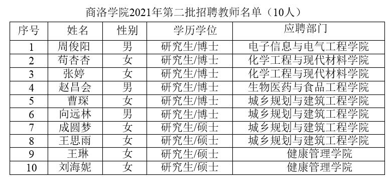 附件:商洛學(xué)院2021年第二批招聘教師名單