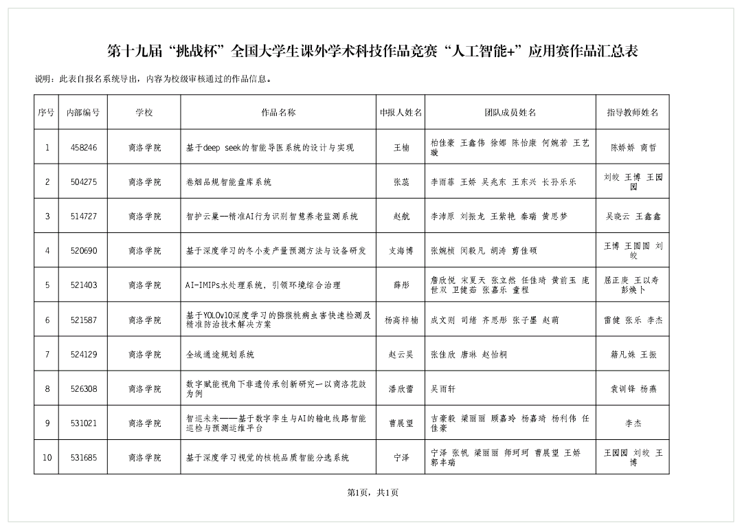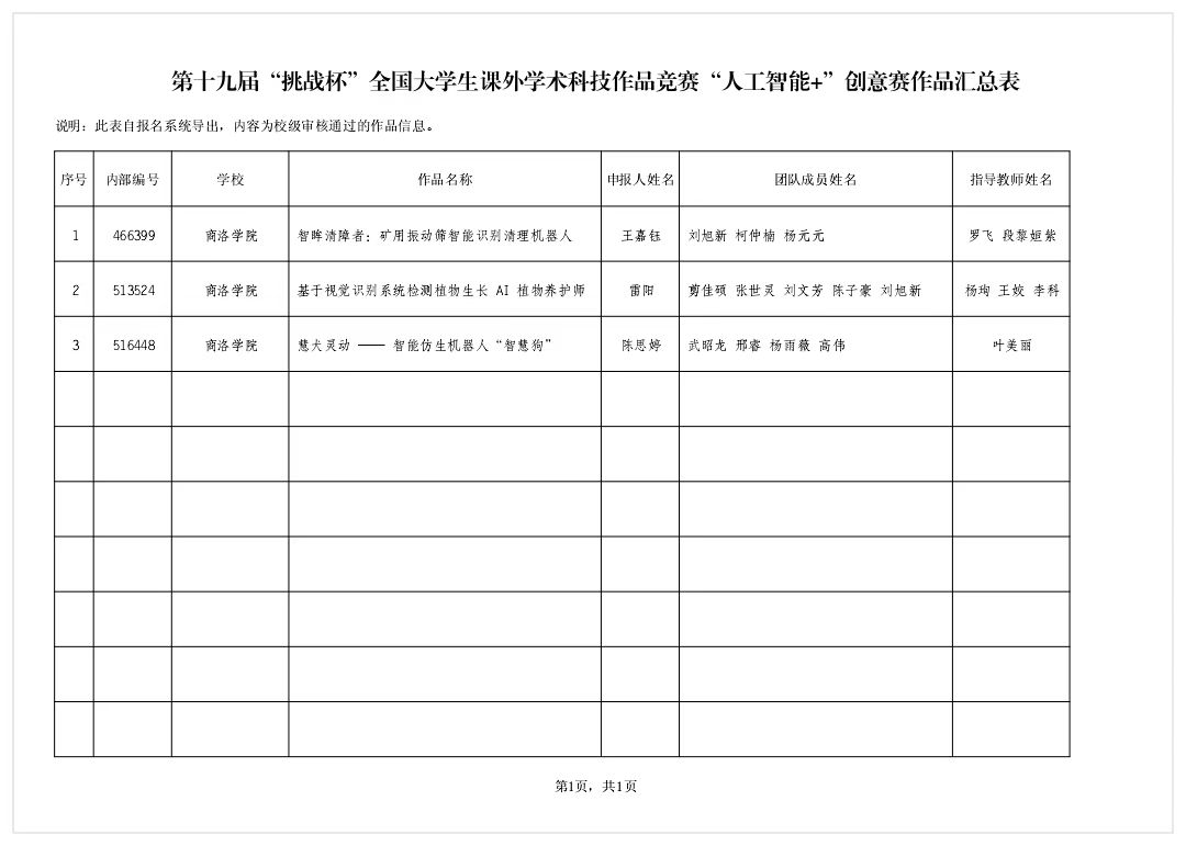 根據(jù)第十九屆“挑戰(zhàn)杯”全國大學生課外學術(shù)科技作品競賽“人工智能+”創(chuàng)意賽及應(yīng)用賽的有關(guān)要求,我校學生積極參加競賽,共有13項作品通過學校審核,其中“人工智能+”創(chuàng)意賽3項作品,“人工智能+”應(yīng)用賽10項作品?,F(xiàn)將名單公示如下:
