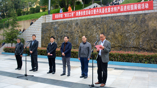 10月17日,時(shí)值第6個(gè)國(guó)家扶貧日和第27個(gè)國(guó)際消除貧困日,為進(jìn)一步推進(jìn)“雙百工程”脫貧攻堅(jiān)活動(dòng)深入開(kāi)展,號(hào)召全校師生投身脫貧攻堅(jiān)熱潮之中,我校與丹鳳縣人民政府聯(lián)合舉辦了“商洛學(xué)院‘雙百工程’消費(fèi)扶貧暨丹鳳縣優(yōu)質(zhì)農(nóng)特產(chǎn)品進(jìn)校園”展銷活動(dòng)。校黨委副書(shū)記彭虎軍、丹鳳縣副縣長(zhǎng)郝新軍出席活動(dòng)啟動(dòng)儀式并講話,副校長(zhǎng)劉寶盈主持儀式,副校長(zhǎng)劉勇出席。我校相關(guān)職能部門負(fù)責(zé)人、教師代表,丹鳳縣教科體局、農(nóng)業(yè)農(nóng)村局負(fù)責(zé)人等參加活動(dòng)啟動(dòng)儀式。