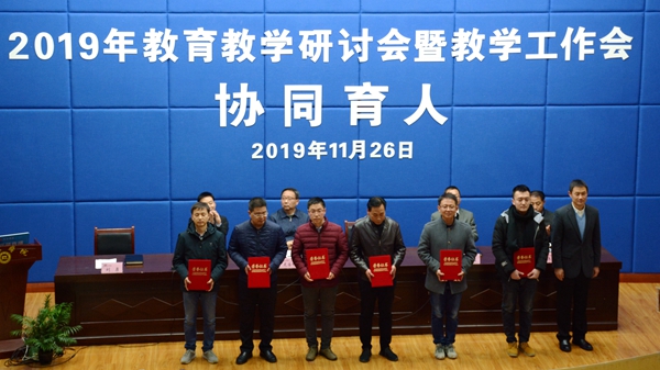 大會對我校2019年度優(yōu)秀教案、優(yōu)秀電子課件及實習優(yōu)秀指導教師、2019屆校級優(yōu)秀畢業(yè)論文指導教師、第五屆“互聯(lián)網+”大學生創(chuàng)新創(chuàng)業(yè)省賽獲獎項目指導教師、2019年度青年教師教學技能競賽獲獎教師、2019年教育教學研討會優(yōu)秀論文及優(yōu)秀組織單位進行了表彰,在熱烈的掌聲中,出席大會的校領導為受表彰的集體和教師代表頒發(fā)了獲獎證書并進行了授牌。獲獎教師代表、生物醫(yī)藥與食品工程學院張亦琳博士作了發(fā)言。
