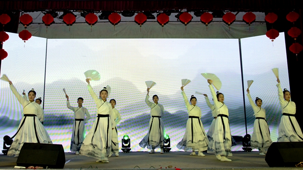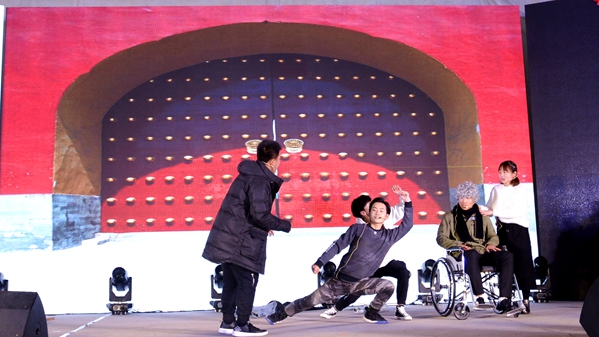 “家是最小國,國是千萬家”,臺(tái)下觀眾揮舞手中的小國旗與臺(tái)上演員熱情互動(dòng),在合唱歌曲《國家》的歌聲中表達(dá)中華兒女拳拳愛國情。哪有什么歲月靜好,只是有人替你負(fù)重前行,《我要去北京》以小品的方式致敬退伍老兵。靈動(dòng)的少女在神秘的山林、悠揚(yáng)的曲調(diào)中跳起《傣族舞韻》,電音歌曲《沒有理想的人不傷心》用跳動(dòng)的音符震撼全場(chǎng),舞蹈《映山紅》再現(xiàn)了那段崢嶸的紅色歲月,街舞《Swallow》再次引爆現(xiàn)場(chǎng)的歡呼聲、尖叫聲。神秘的魔術(shù)師和可愛的小丑共同帶來魔術(shù)表演《魔幻色彩》,帶給觀眾歡樂和驚嘆。以下雪的故宮為背景的歌舞表演《雪落下的聲音》,歌聲甜美、舞蹈優(yōu)雅、意境深遠(yuǎn),讓人賞心悅目。師生同臺(tái)表演的武術(shù)《風(fēng)云聚》集太極、格斗、跆拳道、雙截棍、散打?yàn)橐惑w,展現(xiàn)了中華武術(shù)深邃的文化意蘊(yùn)。在歌伴舞《不忘初心》悠揚(yáng)的旋律中,晚會(huì)圓滿落幕,領(lǐng)導(dǎo)嘉賓與全體演職人員合影留念,共同祝愿商洛學(xué)院在新的一年逐夢(mèng)前行、再創(chuàng)輝煌。