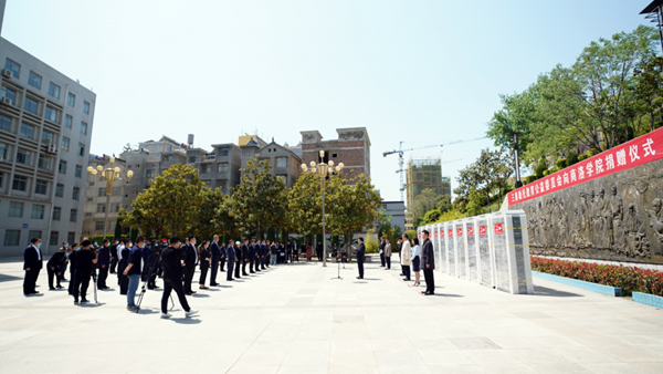 4月26日,三秦助托教育公益委員會向我校捐贈一批醫(yī)用口罩、體感消毒門及智慧校園設備,商洛市委副書記、市長鄭光照,三秦助托教育公益委員會首席執(zhí)行官、億和盛豐集團董事局主席黃鵬,三秦助托教育公益委員會執(zhí)行官、中建海峽建設發(fā)展有限公司陜西區(qū)域市場部總經(jīng)理郭娜,校黨委書記龍治剛,校長范新會,副校長劉勇出席捐贈儀式。儀式由副校長王新軍主持。