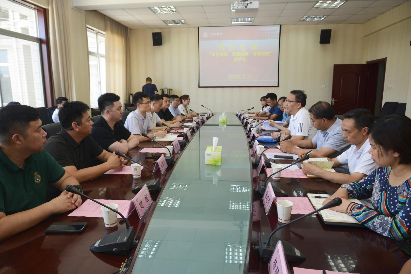 7月27日,教育部學(xué)校規(guī)劃建設(shè)發(fā)展中心處長(zhǎng)王晴、中教能源研究院院長(zhǎng)黃剛、中教能源西北分院院長(zhǎng)韓帥,陜西炳鷂實(shí)業(yè)有限公司董事長(zhǎng)吳君清、總裁李昭輝、副總裁樊堃,陜西和萬(wàn)興教育科技有限公司董事長(zhǎng)劉耀中等領(lǐng)導(dǎo)嘉賓來(lái)校就“綠色校園、智慧校園、海綿校園”建設(shè)事宜進(jìn)行調(diào)研座談。校黨委書記龍治剛出席座談會(huì),副校長(zhǎng)王新軍主持座談會(huì),院長(zhǎng)辦公室、教務(wù)處、發(fā)展規(guī)劃處、財(cái)務(wù)處、資產(chǎn)處、后勤保障處、信息中心相關(guān)負(fù)責(zé)人參加座談交流。